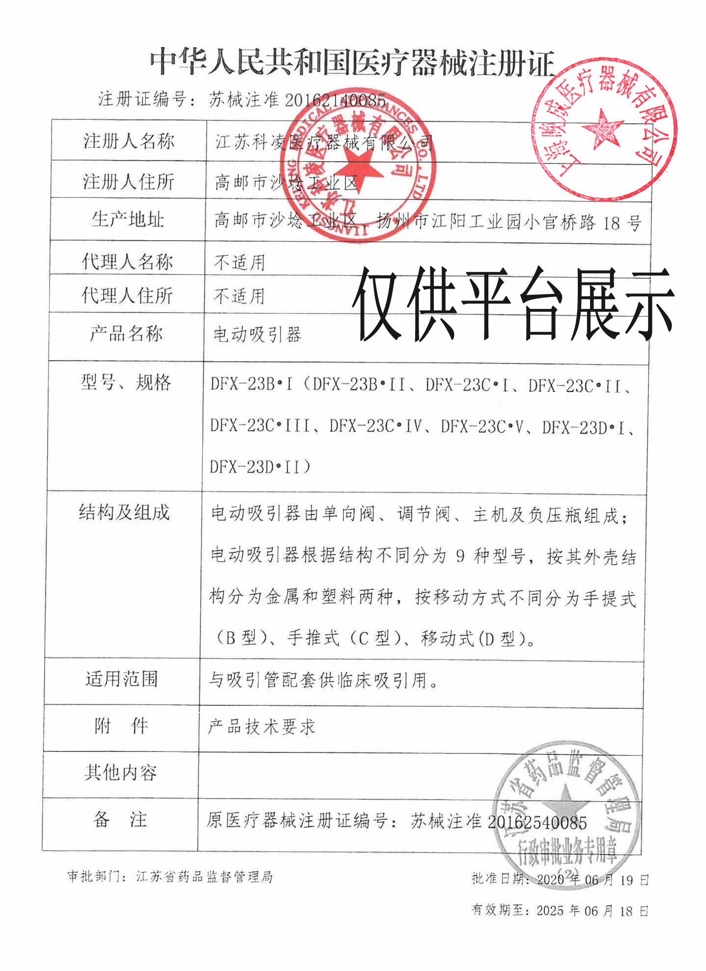 注冊證號:蘇械注準(zhǔn)20162140085